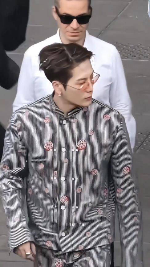 比如之前参加巴黎时装周LV秀场时,他身着蓝白条纹西装套装,搭配白色运动鞋和圆形墨镜,身姿挺拔,精神饱满。